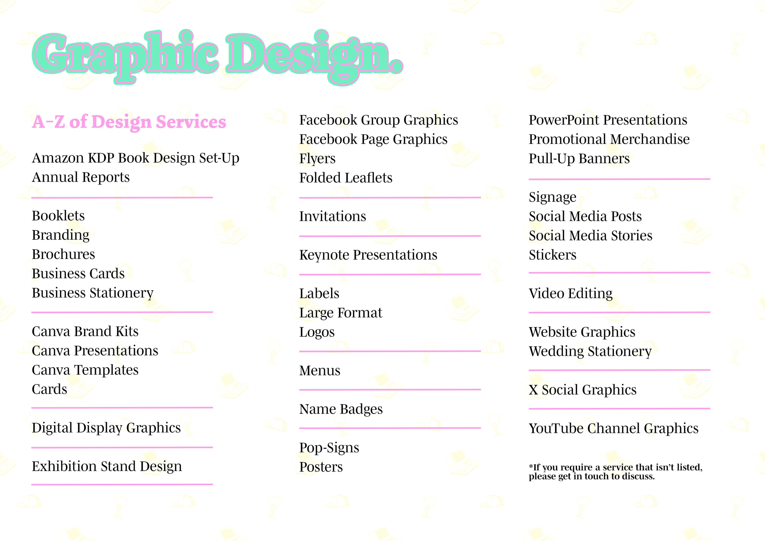 Take a look at our A-Z of graphic design services here and review examples of our past work in the gallery below…